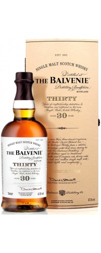 Balvenie 30 - это исключительный односолодовый виски, для которого Девид Стюарт, мастер The Balvenie Malt, отбирает особенные бочки, в которых виски созревает в течение 30 лет. Виски выдерживается в традиционных дубовых бочках из-под бурбона, а также в бочках из-под хереса. Вложив свой богатый опыт и талант, Девид создал богатый, мягкий скотч с необычайной глубиной и сложностью. Balvenie Thirty разливается в бутылки со своей естественной крепостью - 47.3%, сохраняя все характеристики Balvenie.