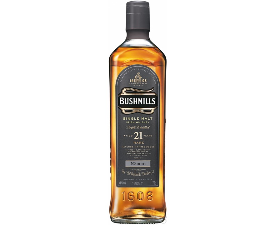 Для виски Бушмилс 16 лет на протяжении десятилетий используют бочки из-под трех видов напитков (херес, бурбон и только потом портвейн). Такой порядок гарантирует отменные вкусовые качества виски, известных не одной тысяче поклонников. Общее впечатление от аромата формируется орехом, чудесными прожилками меда, с «кусочками» сладких фруктов (груша, яблоко) и немного экзотических бананов. На вкусовые качества влияет поджаренный миндаль с изюмом и малая порция ириса. Замечательное послевкусие отличается затяжным сладковатым фруктовым десертом с небольшим торфяным следом.