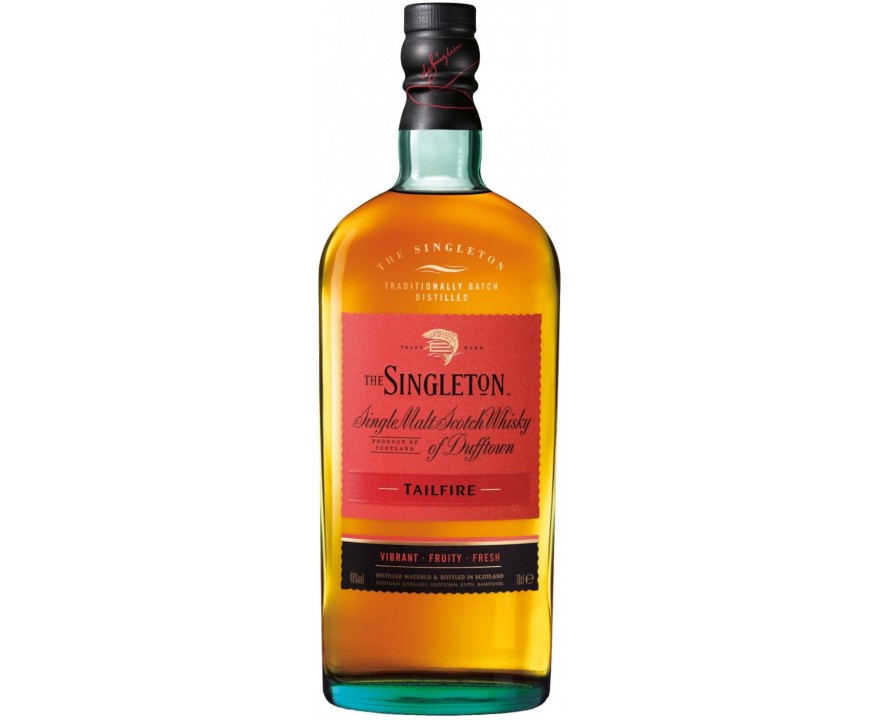 Виски Singleton of Dufftown Tailfire - демонстрирует богатый, пьянящий вкус с нотами ванили, перца, ячменного солода и трав, которые дополняются легкими нюансами фруктового джема. В долгом послевкусии чувствуются оттенки дыма, шоколада, кокоса, дуба и кедра. Обладает богатым ароматом, в котором ноты яблока, винограда, засахаренной малины и апельсиновой цедры гармонично дополняются нюансами клюквы, табака, трав и смолы.