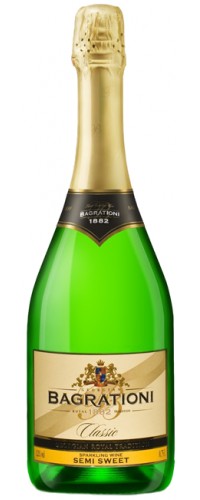 Bagrationi классическое белое полусладкое - традиционное грузинское игристое вино, изготавливаемое из классического купажа винограда сортов Саперави, Чинебули, Мцване и Цицка. Виноград выращивается в популярных винодельческих регионах - Кахетия, Картли и Имеретия. Вино производится по традиционной технологии "Шарма", предполагающей проведение вторичной ферментации в огромных герметичных стальных резервуарах и розлив в бутылки под давлением. Полусладкое игристое вино обладает интенсивным вкусом с тонами яблока и груши, а также утонченным цветочно-фруктовым ароматом.